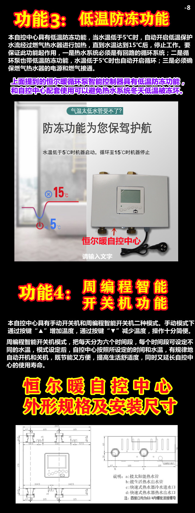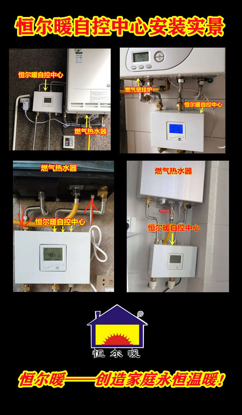恒尔暖自控中心-太阳能(或空气能)和燃气热水器配合供热水智能控制,有零冷水出水和低温防冻功能