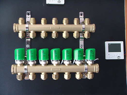 2、 可控制多种终端设备。接线端子有:2个零线、1个火线、1个阀开和1个阀关。除了通过电热执行器控制地暖集分水器流量从而控制室内温度外,还可以通过二通阀控制散热器的开关从而控制依靠散热器供暖的房间温度,也可以控制控制安装在分水器前端主管上的两通阀来控制供暖的水流从而控制全家的温度;