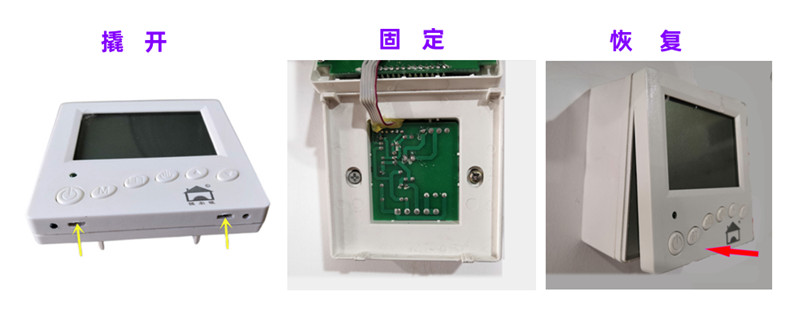用一字螺丝刀将智能控制器的电源板和显示板分开,用螺丝将电源板固定在暗盒上,再将显示板恢复。
