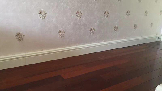 特别是银屋踢脚暖的设计厚度正好满足里后面可以放得下2根外径20mm的铝塑管,因此,在给已装修的精装房或老房子安装时,只有把原来的踢脚线拆除,换成这种踢脚暖,供暖的系统管道沿着踢脚暖的后面布置,过墙打孔,围绕整套房子的外墙内侧布置,墙面几乎看不见一点供暖的系统管道,对原来的装修装饰一点都不破坏,既避免了安装传统暖气片墙面上布置难看管道破话原来装修的缺点,也不会时间长熏黑墙面。到目前位置,可以说踢脚暖是已装修房屋安装供暖完美的方式。