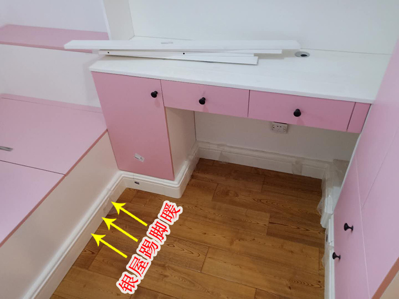银屋踢脚板地暖散热量大,而且是辐射供暖,升温迅速,可以间歇供暖,需要的时候打开,不需要的时候关掉,比地暖要节能60%左右。安装白色的踢脚板地暖搭配粉色的床柜,整个房间更显清新自然。