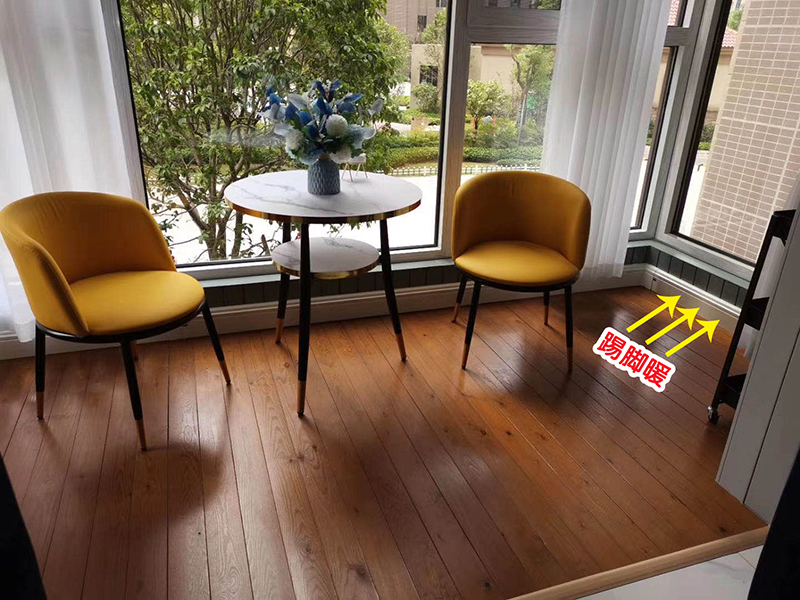 飘窗下面也能安装踢脚板采暖,这样安装不占空间,又很非常接近床的位置,可以让人们睡眠的时候有一个非常温暖舒适的温度环境。