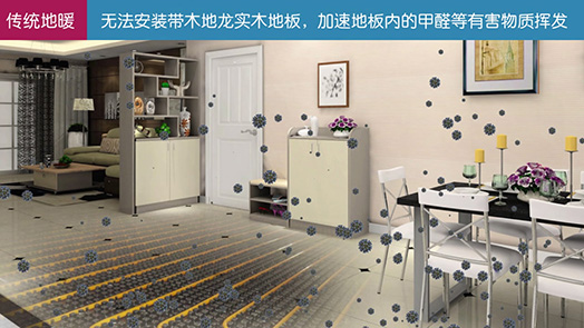 2、不能安装带木地龙的实木地板。只能安装瓷砖、强化地板和实木复合地板,而且由于强化地板和实木复合地板的热阻一般是瓷砖的3倍,因此,安装瓷砖是较好选择,否则耗能就会高很多。