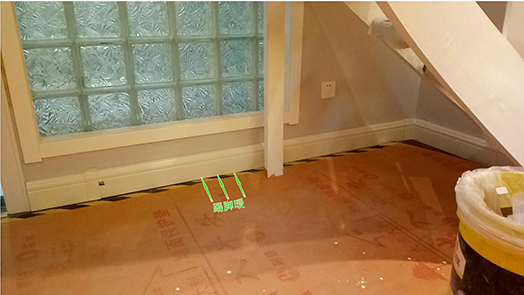 图片说明:单水道踢脚暖系统管道预留在墙角处