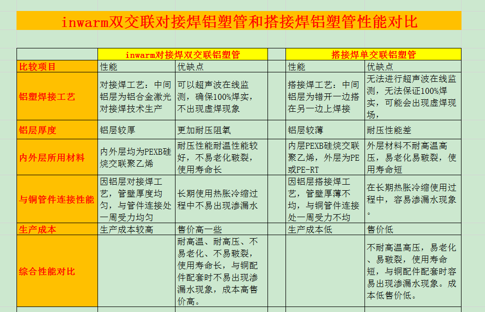 inwarm铝塑管与单交联搭接焊结构材料对比)