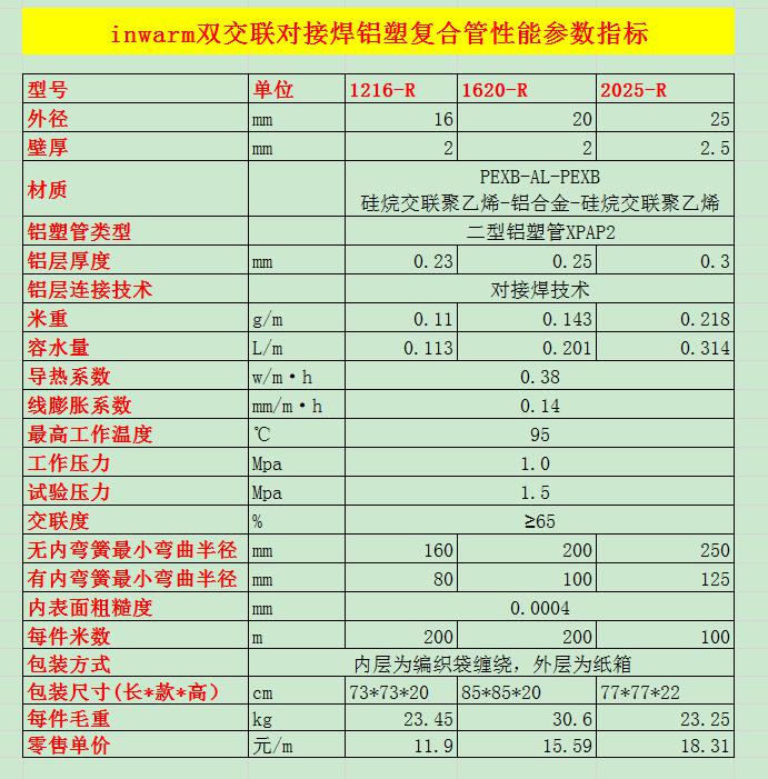 4、inwarm双交联对接焊铝塑管,使用寿命长达50年。
