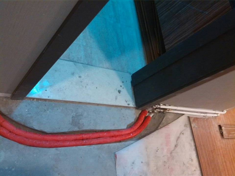 (踢脚暖沿着移门框内侧安装,供暖管道隐藏在踢脚暖后面过门)