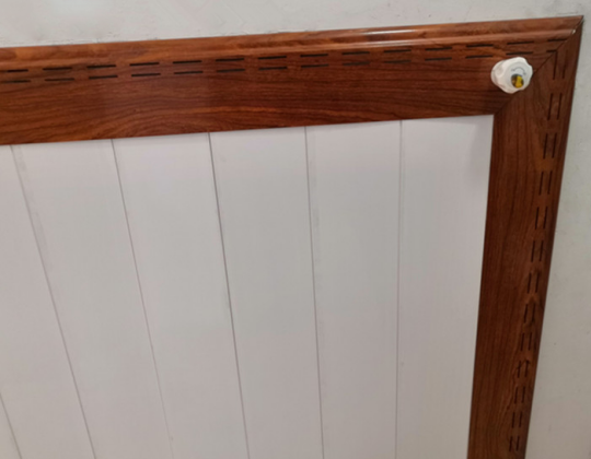 传统暖气片要在工厂里生产成型,现场安装时无法进行增加或减少,如果安装墙面长度不够,根本就无法进行安装;而银屋墙围装饰板暖气的散热片每支长度2.4米,可以在现场根据需要切割成任意高度,而且可以根据墙面长度和供暖散热量的需要,在现场拼装任意长度,可以局部安装,也可以像实木墙围一样安装房间一圈。
