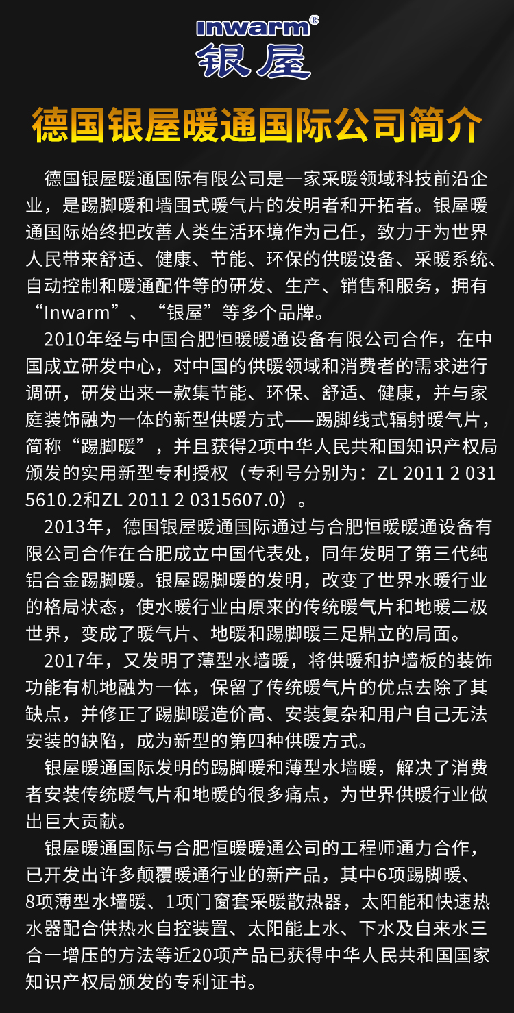 超薄墙裙装饰板型采暖散热器发明厂家德国银屋暖通国际直销批发招商