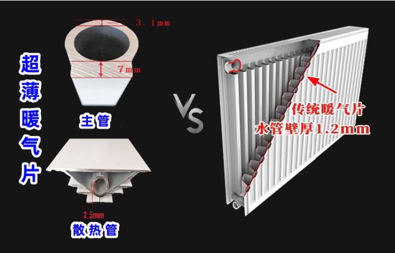六、散热片和主管采用铜活接对接,没有脆弱的焊接点,再加上水道壁厚2.5-3.1mm,是传统暖气片的2倍,经久耐用。