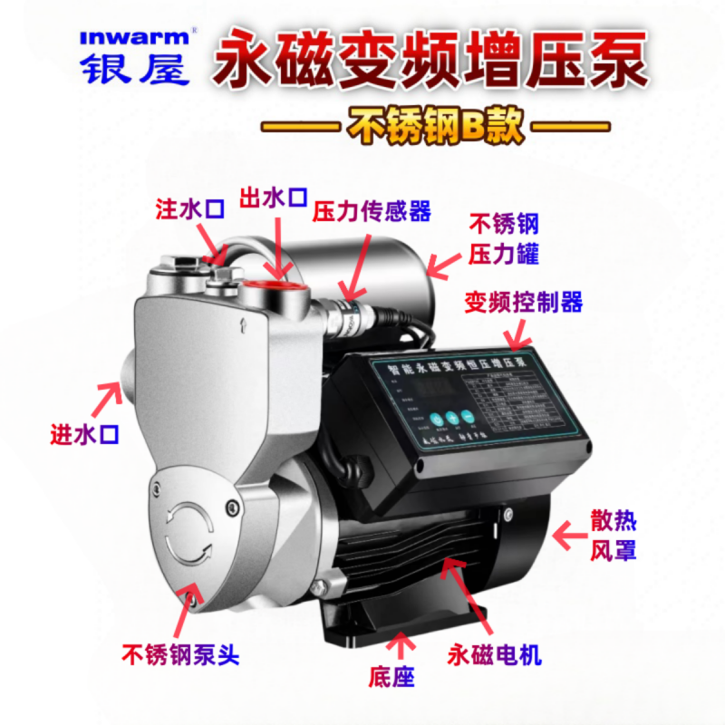 银屋永磁变频自吸增压泵耐温可达110°C,无惧太阳能高温水,冷热水均可放心使用